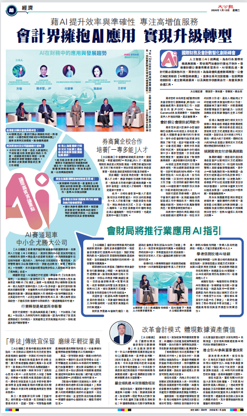 他對行業前景感樂觀,認為AI不會取代會計師,反而能協助他們從基礎工作中釋放出來,轉向更高增值的顧問、策略分析及風險管理角色,實現專業轉型與升級。